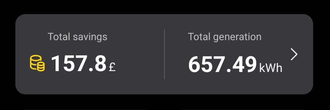 I don't have any way of measuring the amount of the power that I have used, but I observed my electricity bill drop by about £15 a month, so not huge. Having said that, getting half of the cost back in 7 months is good going. Over the winter, the system will make much less electricity, but I will be able to use 100% of it myself.